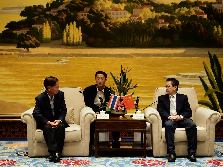 左右:泰中文化经济协会副会长张祥盛与华侨大学徐西鹏校长亲切交谈协商